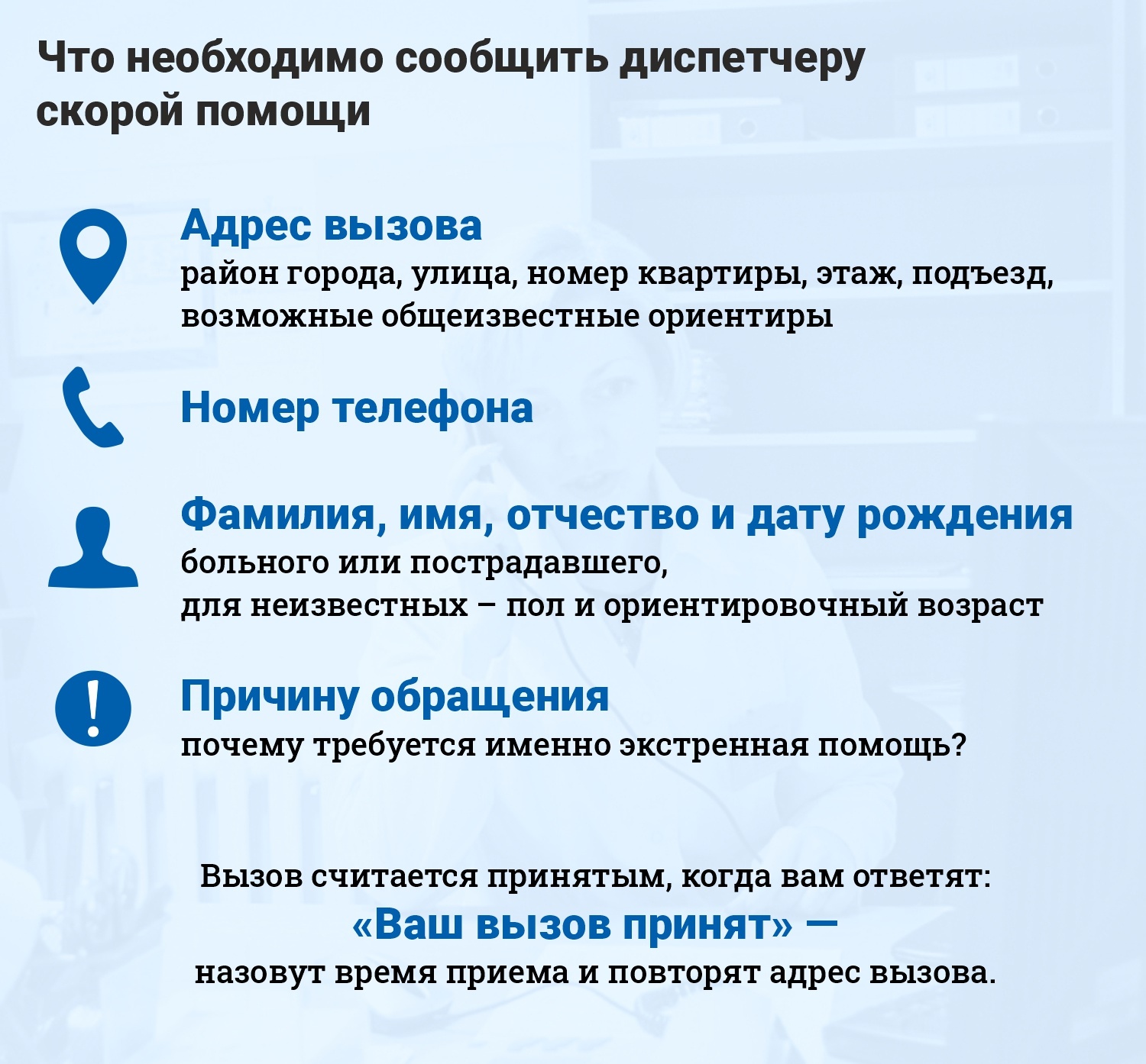 Правильная и полная информация – залог оперативного вызова скорой помощи. При звонке в службу спасения оператору нужно передать как можно больше деталей, чтобы медики могли подготовиться к выезду и взять необходимое оборудование.